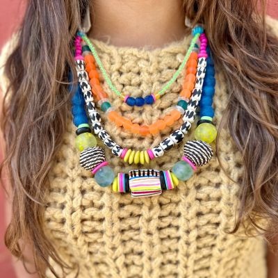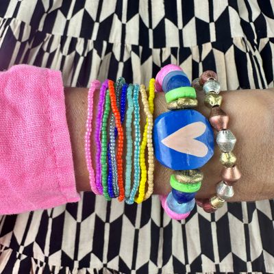 The collaboration between Twine & Twig and Sally King Benedict (SKB) has produced three sold-out collections, showcasing Sally's abstract works and Twine & Twig's signature beads. The limited edition capsules, born out of a shared appreciation for artistry and spontaneity, bring unique, one-of-a-kind works of art that can be styled as jewelry or displayed in one's home.
