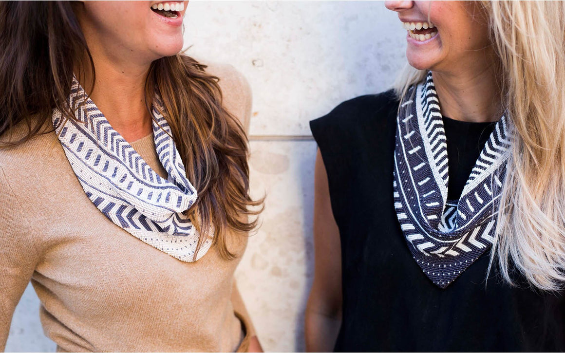 With the appreciation for fine artisanal craftsmanship, North Carolinian roots and long-time love and respect for each other’s brand, Twine & Twig teamed up with native Carolinian accessories designer Mignonne Gavigan to design an exclusive line of necklaces and bracelets. The collection was inspired by the authentic print patterns found in traditional African mud cloths. Each design was exclusive to both brands and are limited in quantity.