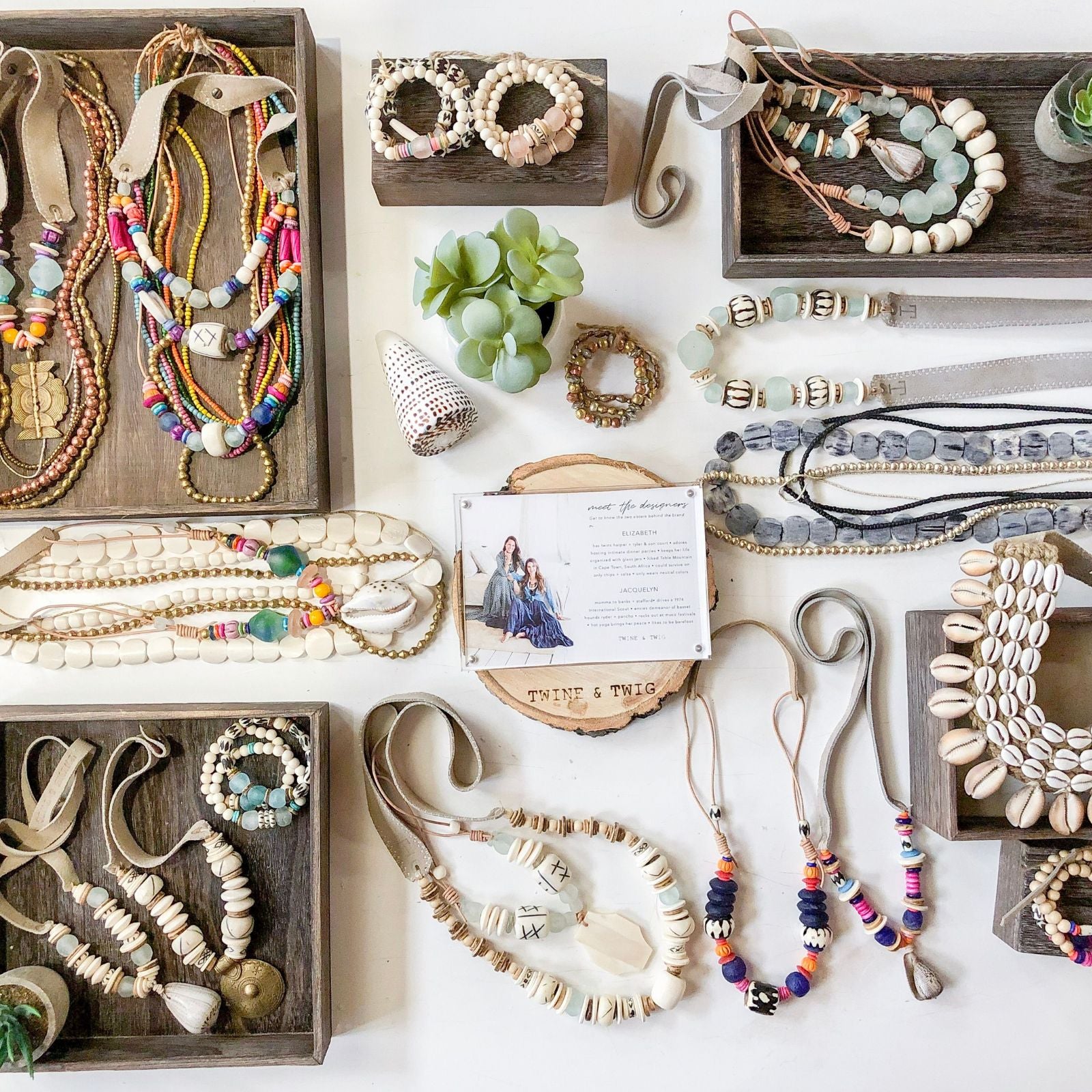 We would love to work with you to create what you are looking for. We have access to every color, shape, size, and texture bead you can imagine. We love nothing more than creating designs exclusively for a brand. We have a collaborative design process to create curated one-of-a-kind products for your customers! There is an undeniable hype for limited release brand collaboration that always proves to drive a shopping frenzy! Check out some past projects we have done for Retail Stores below and email us at wholesale@twineandtwigstyle.com for more information!