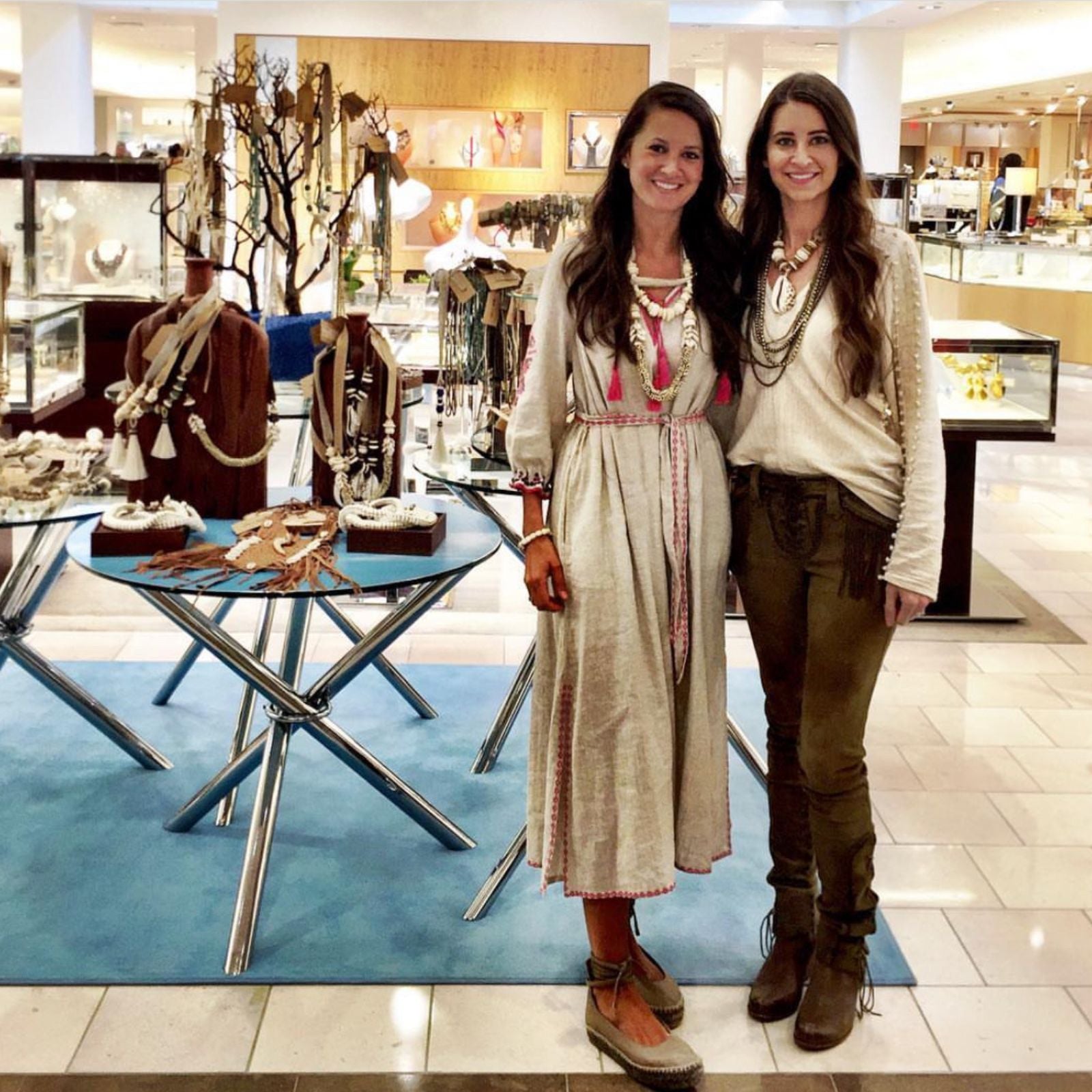 Neiman Marcus marked a significant milestone for us, a moment that felt surreal. Ken Downing, the former fashion director, spotted an employee adorned in T&T and exclaimed, "What is that? We need it here immediately." The whirlwind began as they invited us for an in-person trunk show in Atlanta and also entrusted us with styling the necks for a runway show. This paved the way for ongoing in-person pop-ups at Neiman Marcus over the years.